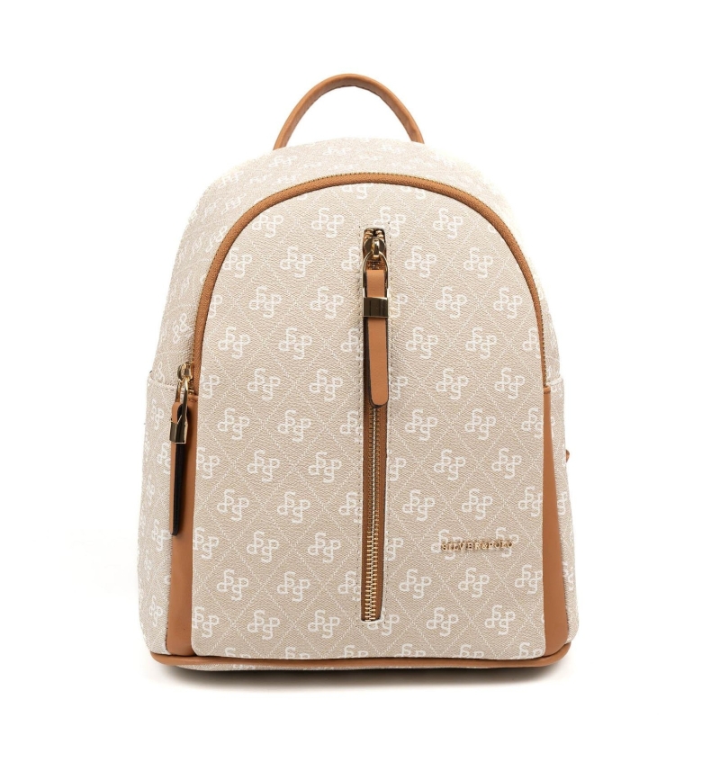 Дамска раница в бежово и кафяво 901 M178 SP Print Silver&Polo