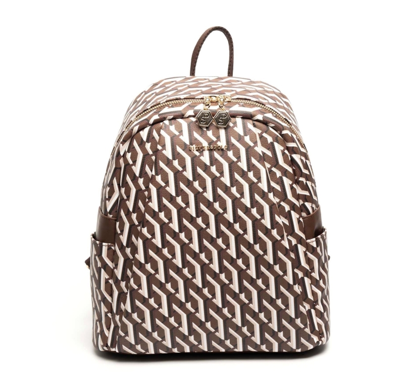 Дамска раница в кафяво и бежово 926 M193 Ekose 3D Silver&Polo