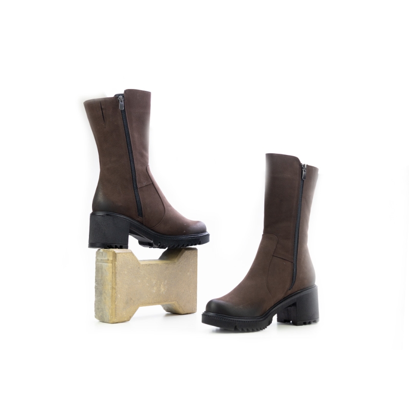Дамски ежедневни боти от естествен набук тъмно кафяви 10-100-33-2094