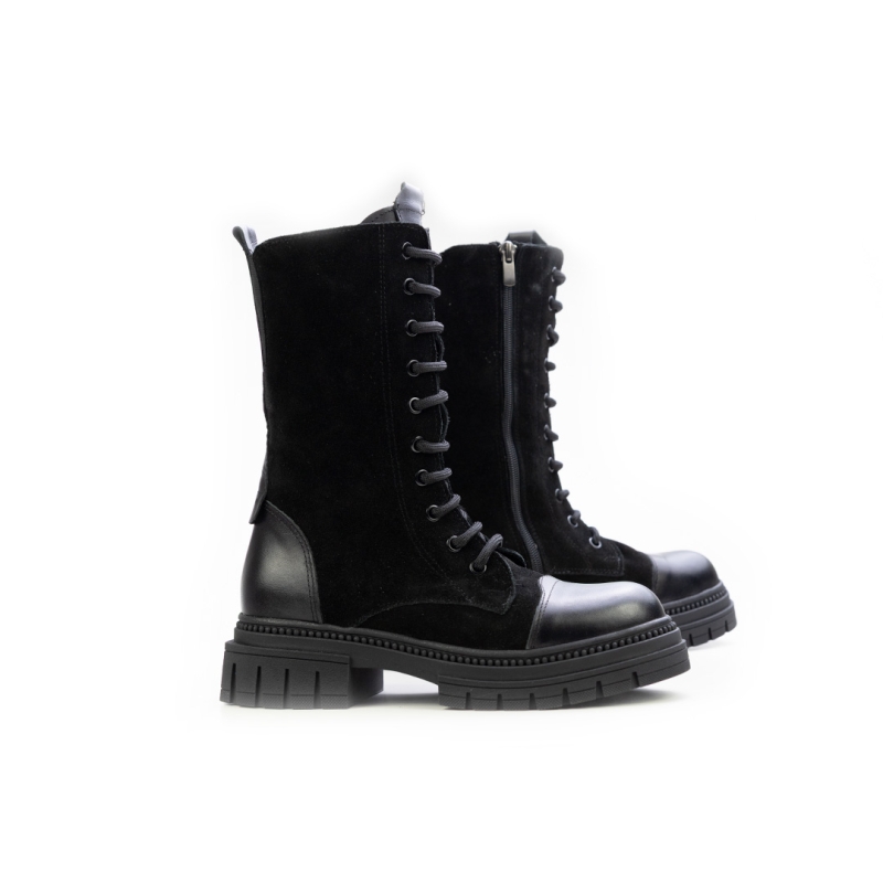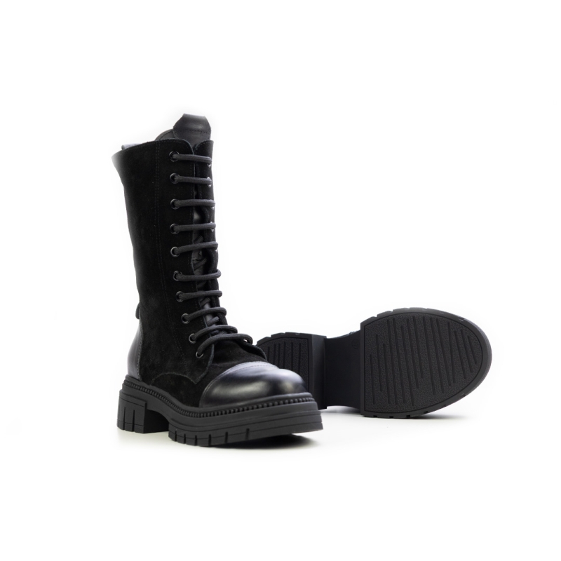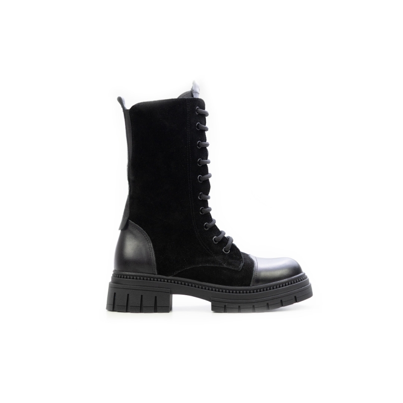 Дамски ежедневни боти в комбинация естествена кожа и естествен велур черни 184-2-61-132
