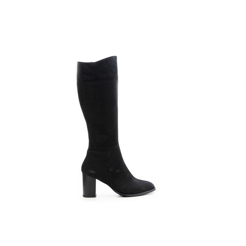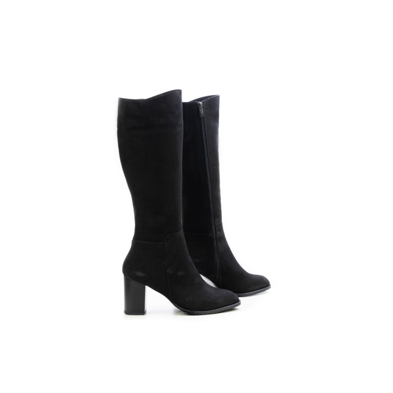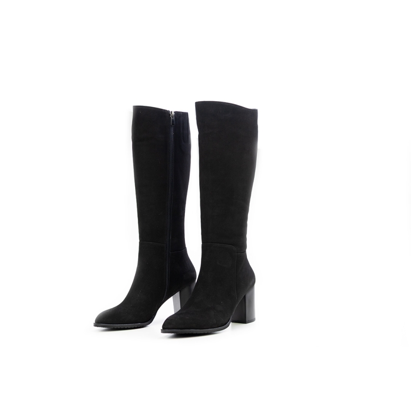 Дамски елегантни ботуши от естествен велур черни 372-180